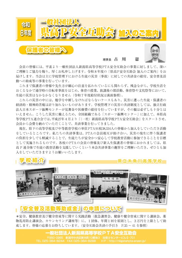 一般社団法人 新潟県高等学校 PTA安全互助会 〒950-0965 新潟市中央区新光町10番地3技術士センタービルⅡ-701